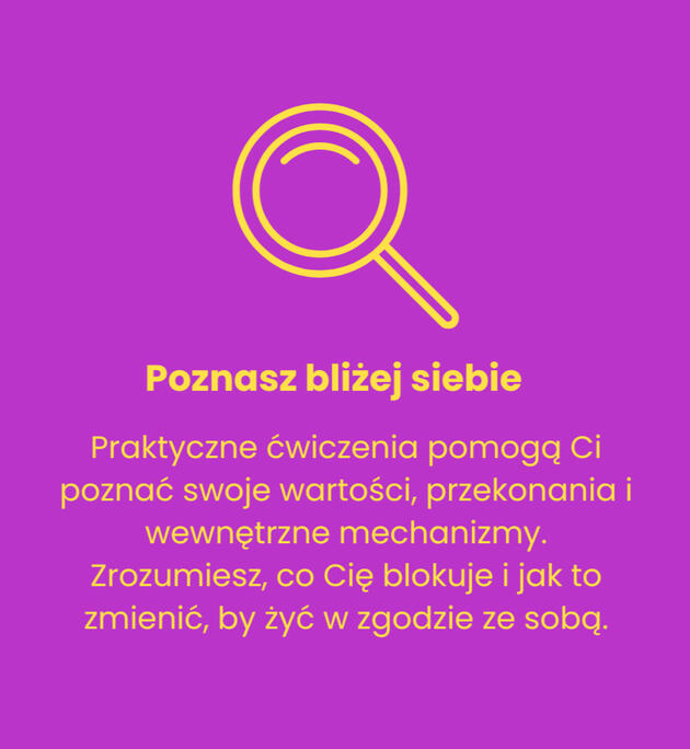Ten 4-tygodniowy kurs online to nie tylko teoria – to namacalne, praktyczne narzędzia, które możesz od razu zastosować. A co najważniejsze, nie będziesz działać w pojedynkę! Nasze wspierające środowisko wspólnej praktyki oraz doświadczony trener zapewnią Ci przestrzeń, których potrzebujesz, by naprawdę rozkwitnąć.