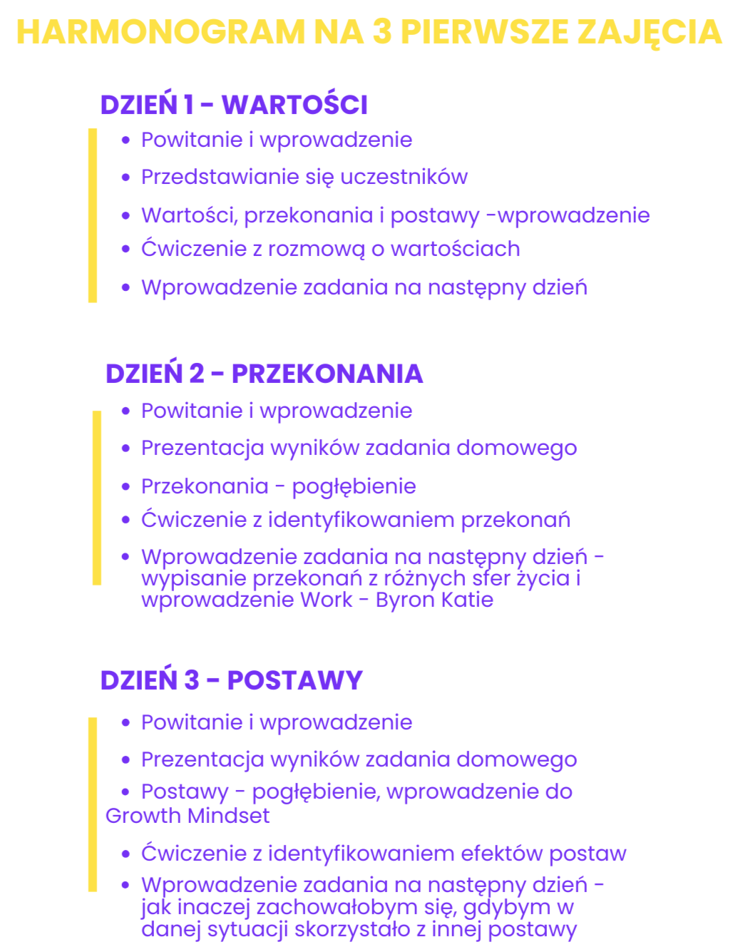 - 12 zajęć na żywo po 90 minut na platformie Zoom przez 4 tygodnie